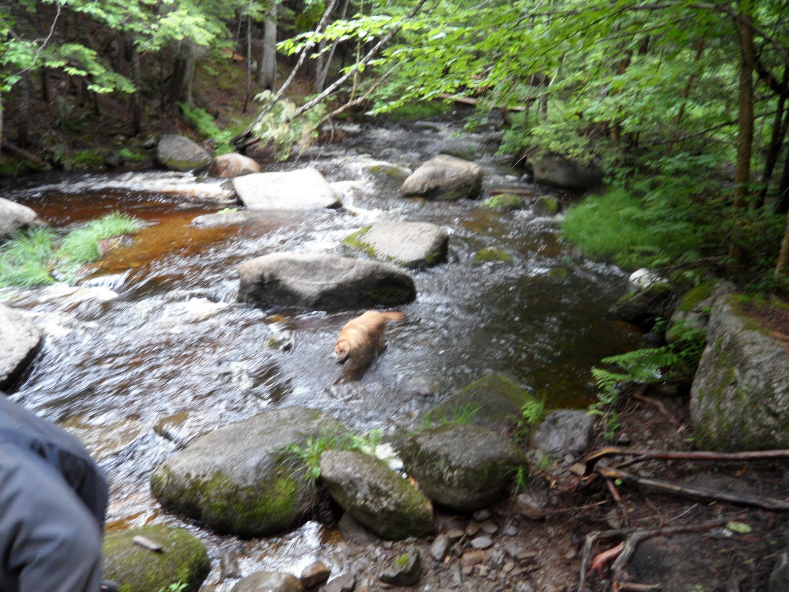 So trying to maneuver through, over, around, beside, the slippery rocks with two 80 pound dogs weaving in and out of our legs made the journey more precarious than it already was.